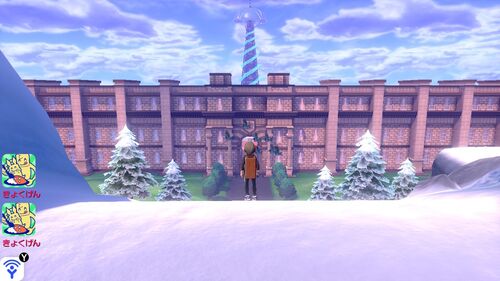 駅から雪山を越えて、見えてきました。 シュートシティです 城塞のような外観ですね、さりげなく四季を感じさせるように各々の街が工夫されていますね。 遠くには観覧車のような乗り物も見えますし、東京ドームみたいなスタジアムも見えますね。 だいぶ大き…