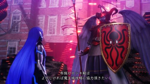 アブディエルは味方を鼓舞して意気揚々と魔王城に攻め込んでいきました。 主人公は天使パワーに魔王城攻略に協力をお願いされます。 お願いされなくても行くのですが、長めの階段を降りると不可思議な模様が見えてきました。 周りの壁もひびが入っていて今に…